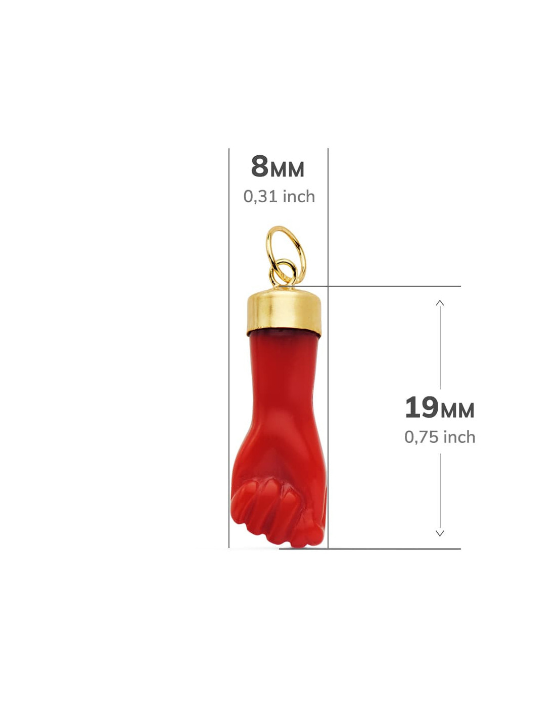 18K COLGANTE HIGA MANO ROJA 19X8 MM