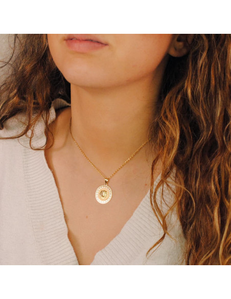 18K MEDALLA ORO AMARILLO MEDUSA CON BORDE CALADA Y GRECA MATIZADA 20 MM