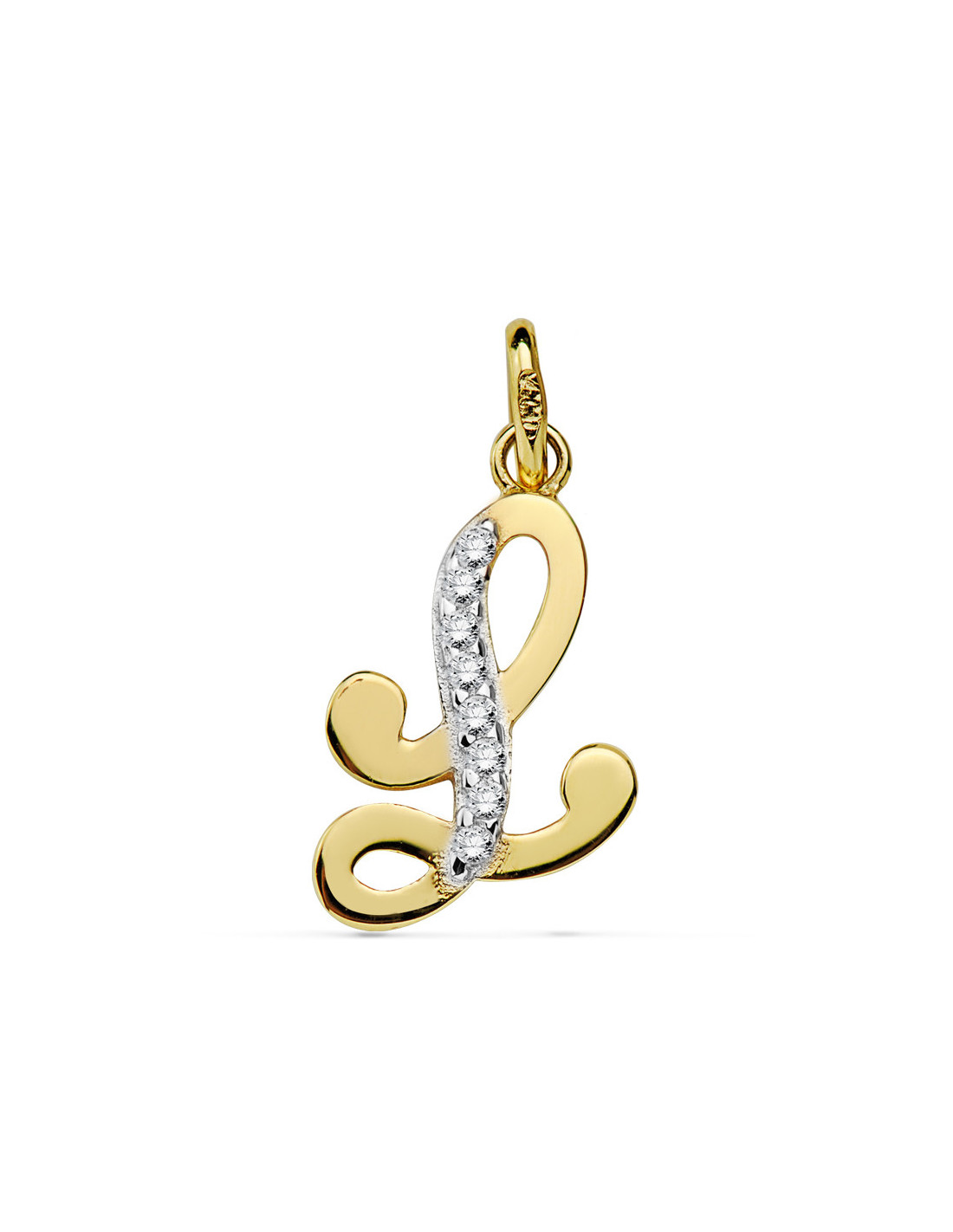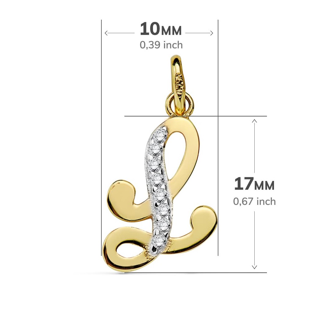 18K COLGANTE LETRA L CIRCONITAS 17X10 MM