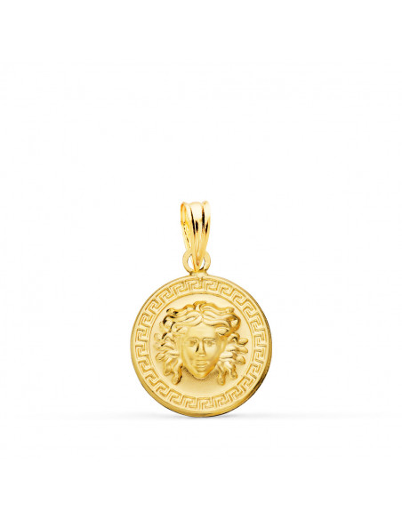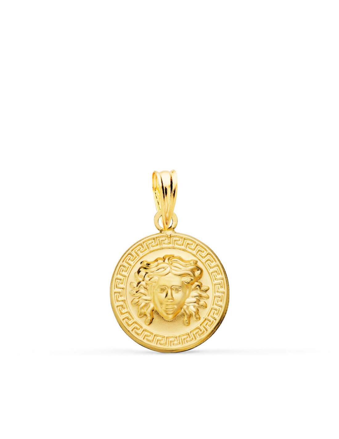 18K MEDALLA ORO AMARILLO MEDUSA CON BORDE DE GRECA MATIZADA 15 MM