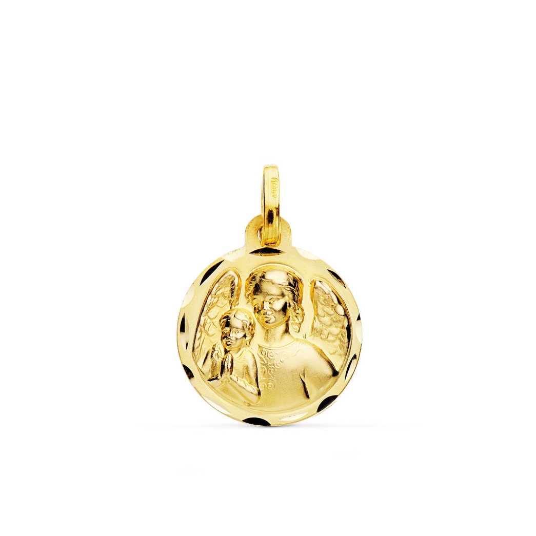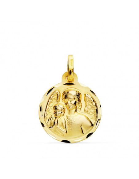 18K MEDALLA ANGEL DE LA GUARDA CON NIÑO TALLADA 16 MM