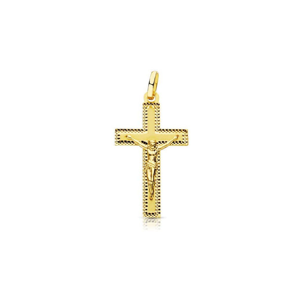 18K CRUZ CRISTO TALLADA 27X15 MM