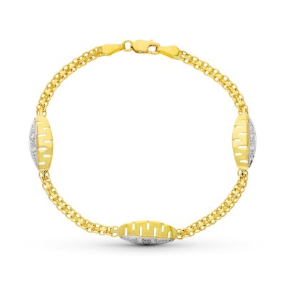 18K PULSERA ORO BICOLOR CIRCONITAS 17.5 CM