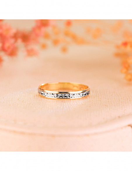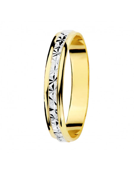 9K ALIANZA ORO BICOLOR TALLADA Y BORDES BRILLO 3 MM