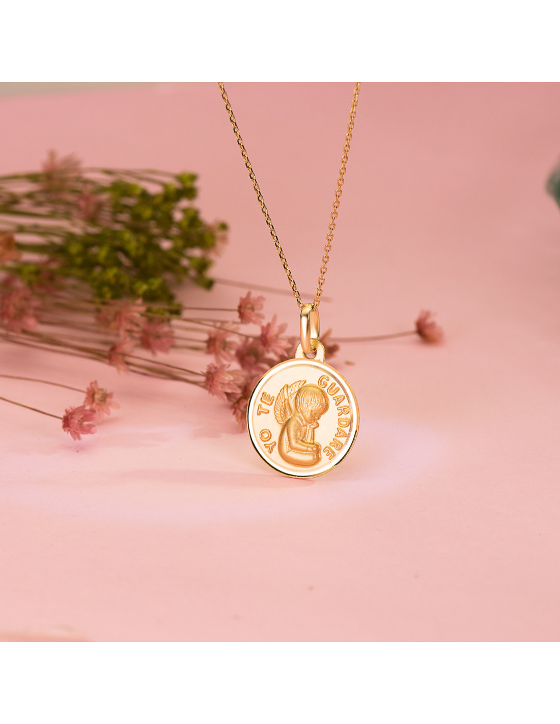 18K MEDALLA ANGEL YO TE GUARDARE BISEL 16 MM