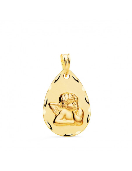 18K MEDALLA GOTA ANGELITO BURLON TALLADA 21X14 MM