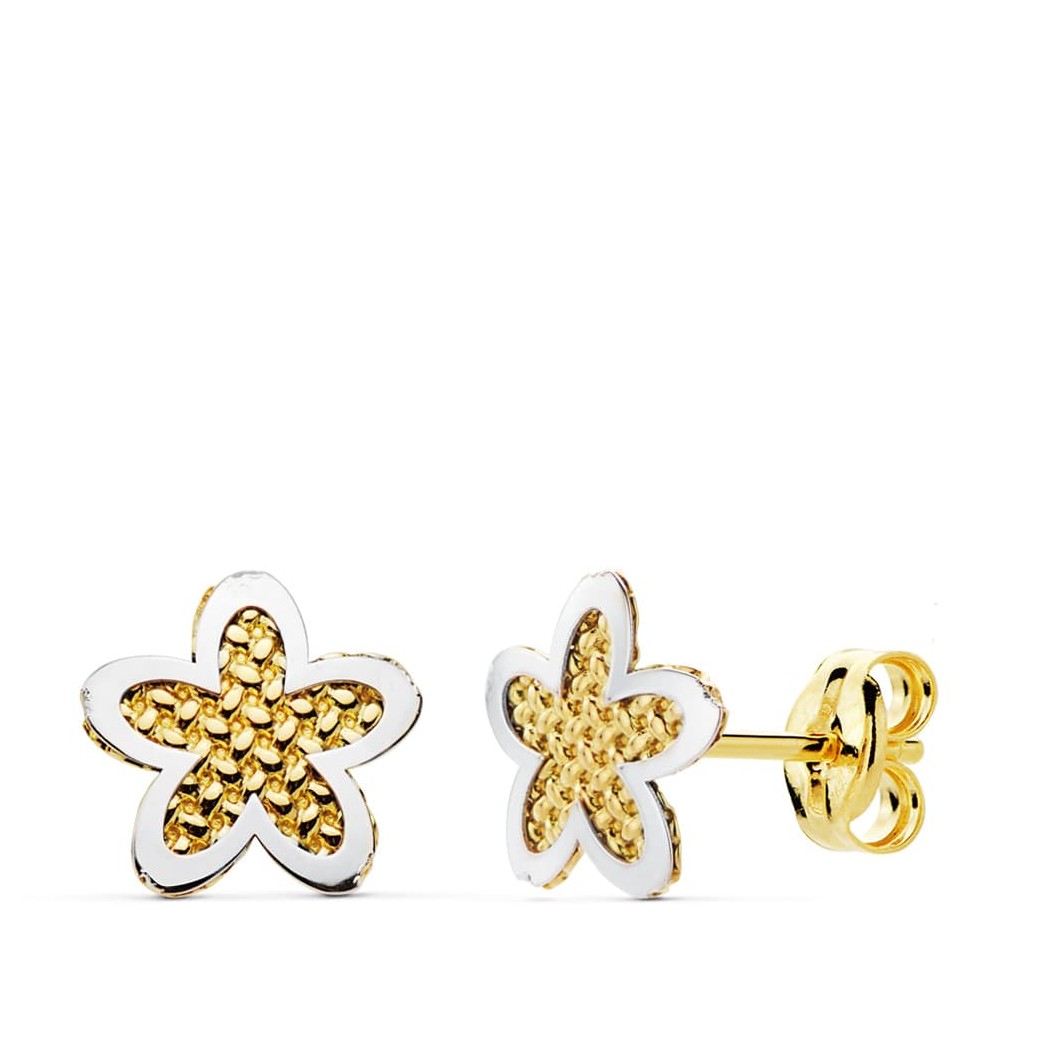 18K PENDIENTES ORO BICOLOR FLOR 7.5X7.5 MM