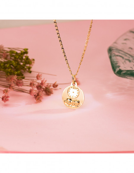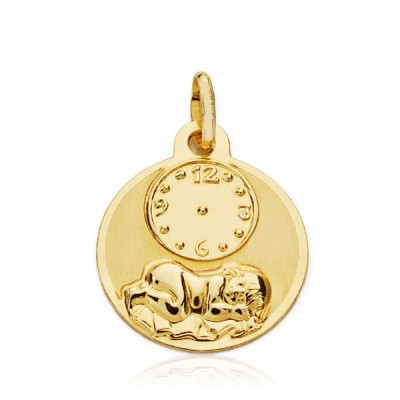 18K MEDALLA REDONDA NIÑO DE LA HORA CON RELOJ BRILLO Y MATE 15 MM