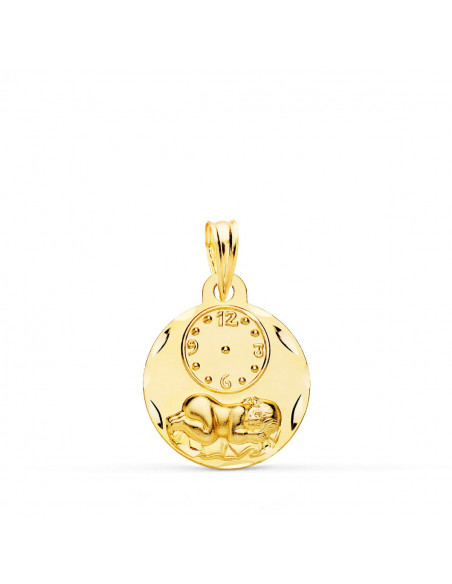 18K MEDALLA REDONDA NIÑO DE LA HORA CON RELOJ TALLADA 15 MM