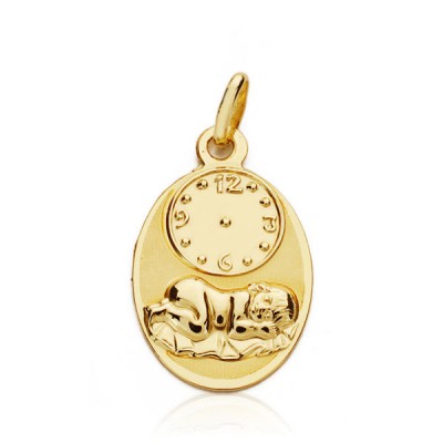 MEDALLA NIÑO Y HORA. 19 X 12 MM