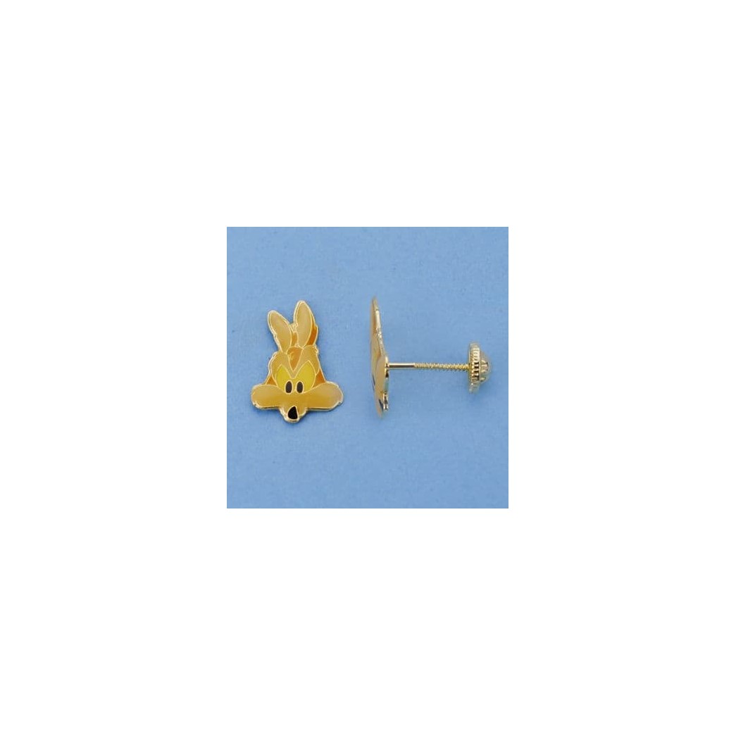 18K PENDIENTES ORO AMARILLO COYOTE ESMALTADO. 12X8 MM