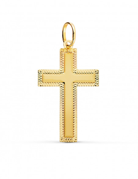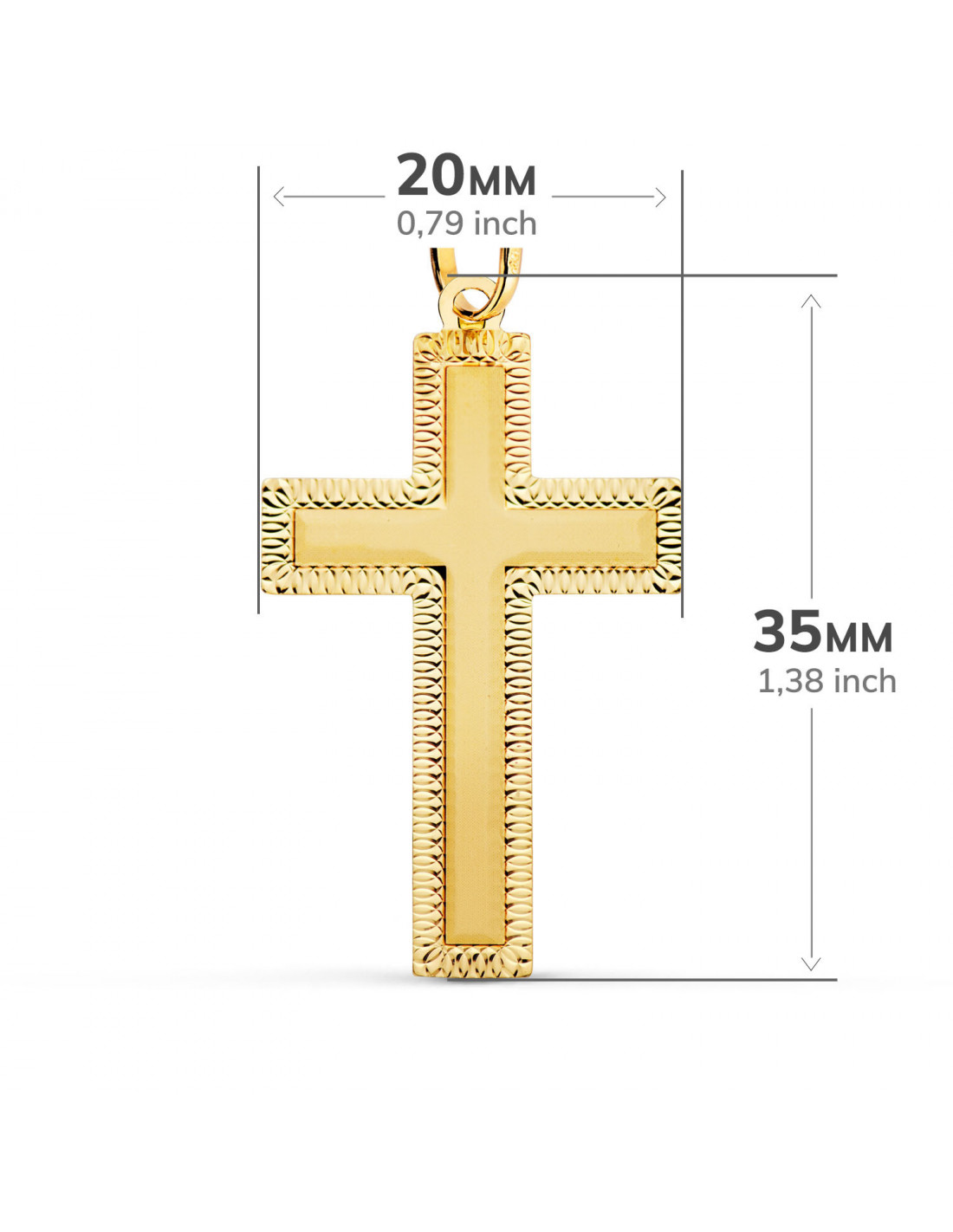 18K CRUZ ORO AMARILLO SIN CRISTO TALLADA 35X20 MM