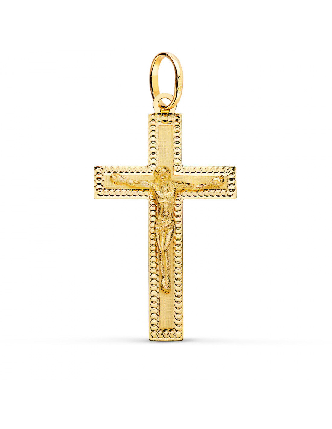 18K CRUZ ORO AMARILLO CON CRISTO TALLADA 35X20 MM