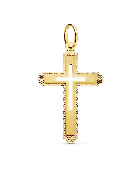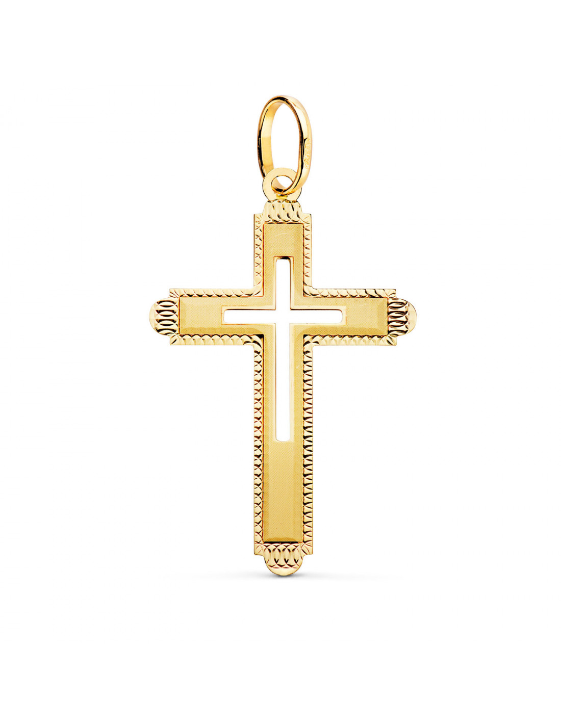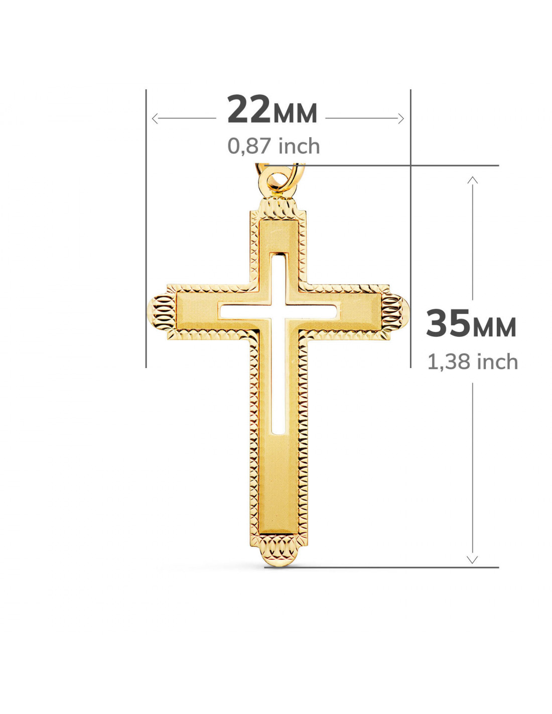18K CRUZ ORO AMARILLO SIN CRISTO TALLADA Y MATIZADA 35X22 MM