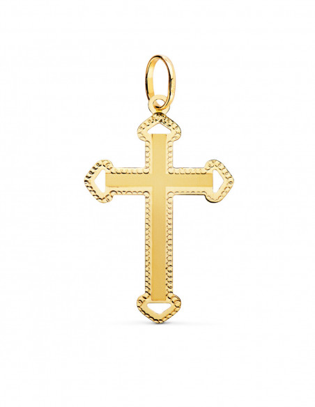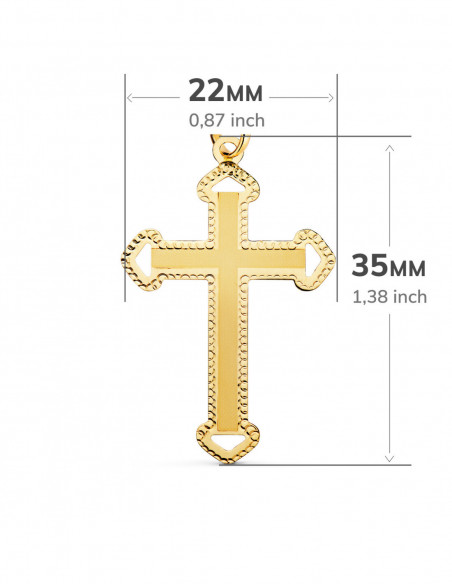 18K CRUZ ORO AMARILLO SIN CRISTO TALLADA Y MATIZADA 35X22 MM
