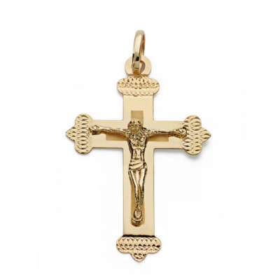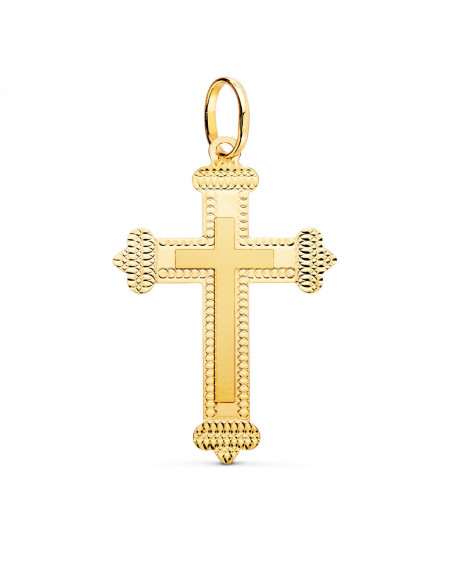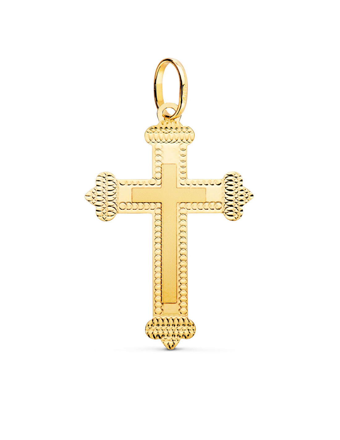 18K CRUZ ORO AMARILLO SIN CRISTO TALLADA 35X23 MM