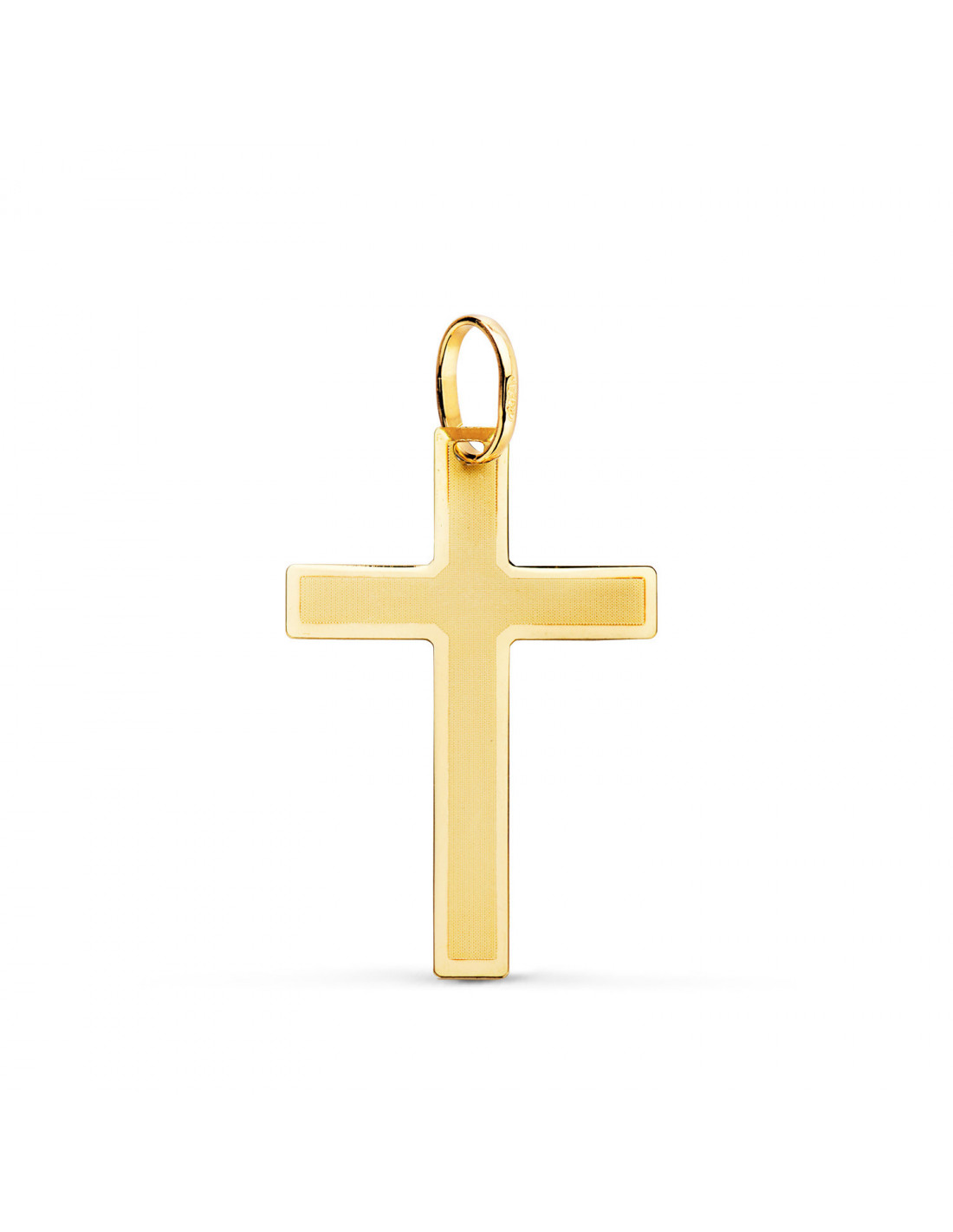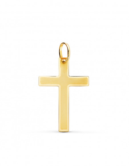 18K CRUZ ORO AMARILLO SIN CRISTO PLANA MATE Y BRILLO 26X17 MM