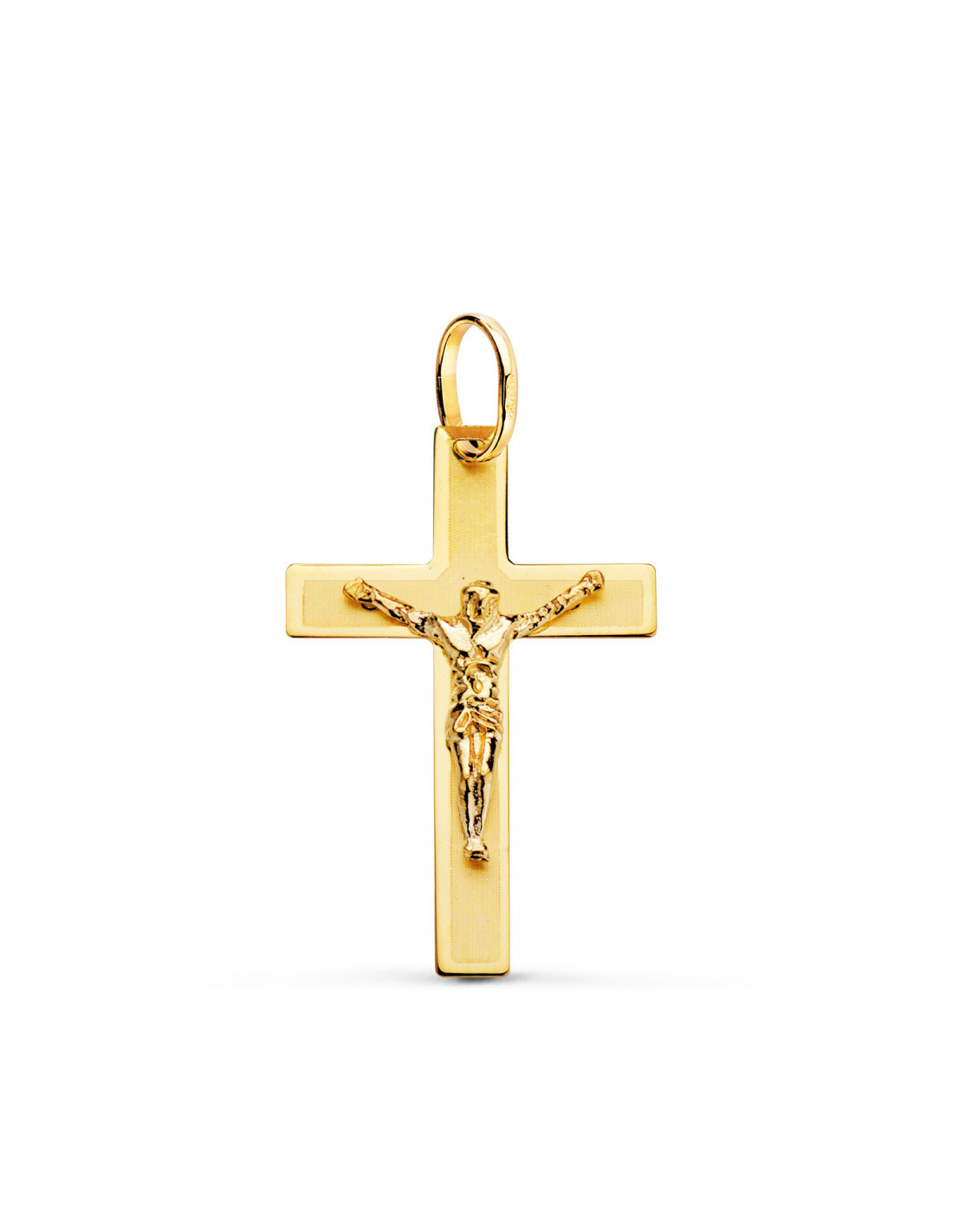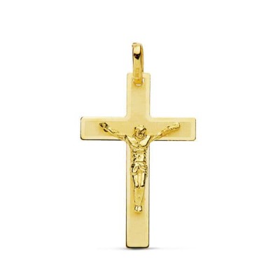 18K CRUZ ORO AMARILLO CON CRISTO LASER PLANA 26X17 MM