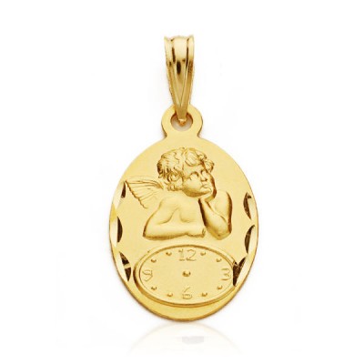 18K MEDALLA OVAL ANGELITO BURLON CON RELOJ TALLADA 19X12 MM