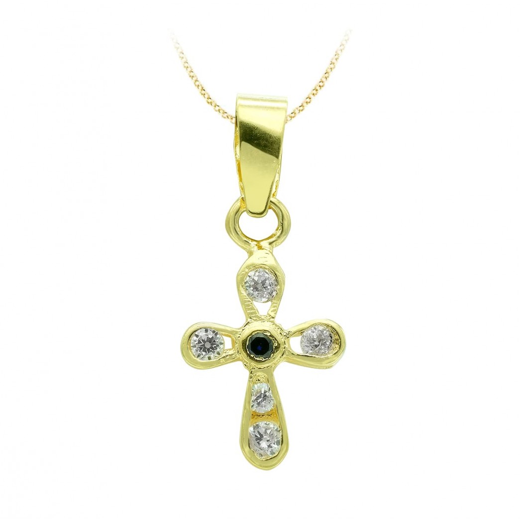 18K CRUZ ORO AMARILLO CIRCONITAS 14X9 MM