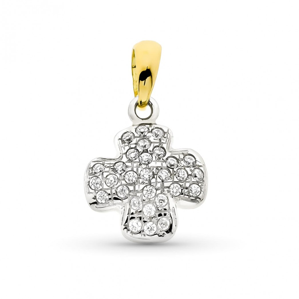 18K CRUZ ORO BICOLOR CIRCONITAS 16X13 MM