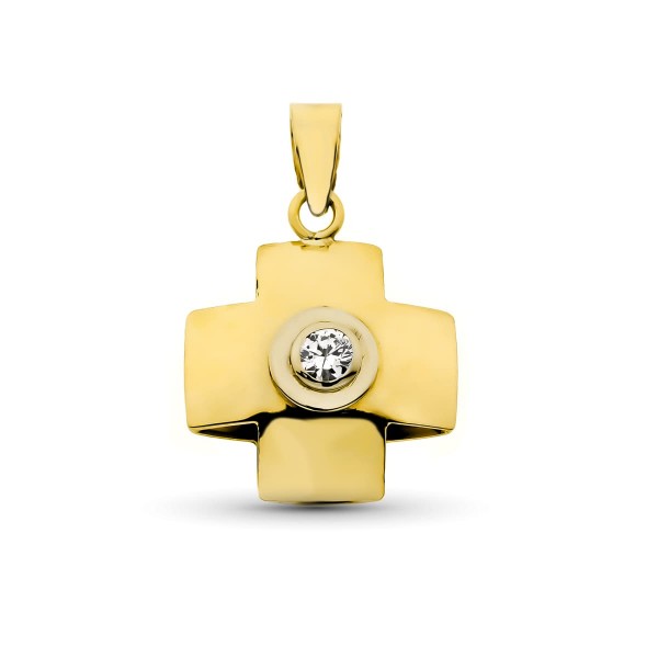18K CRUZ ORO AMARILLO CON CIRCONITA 18X15 MM