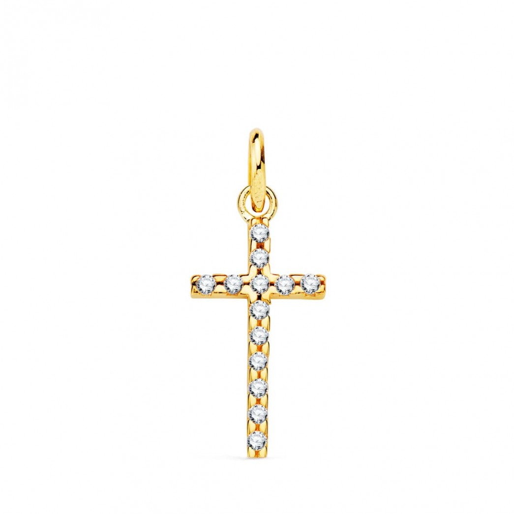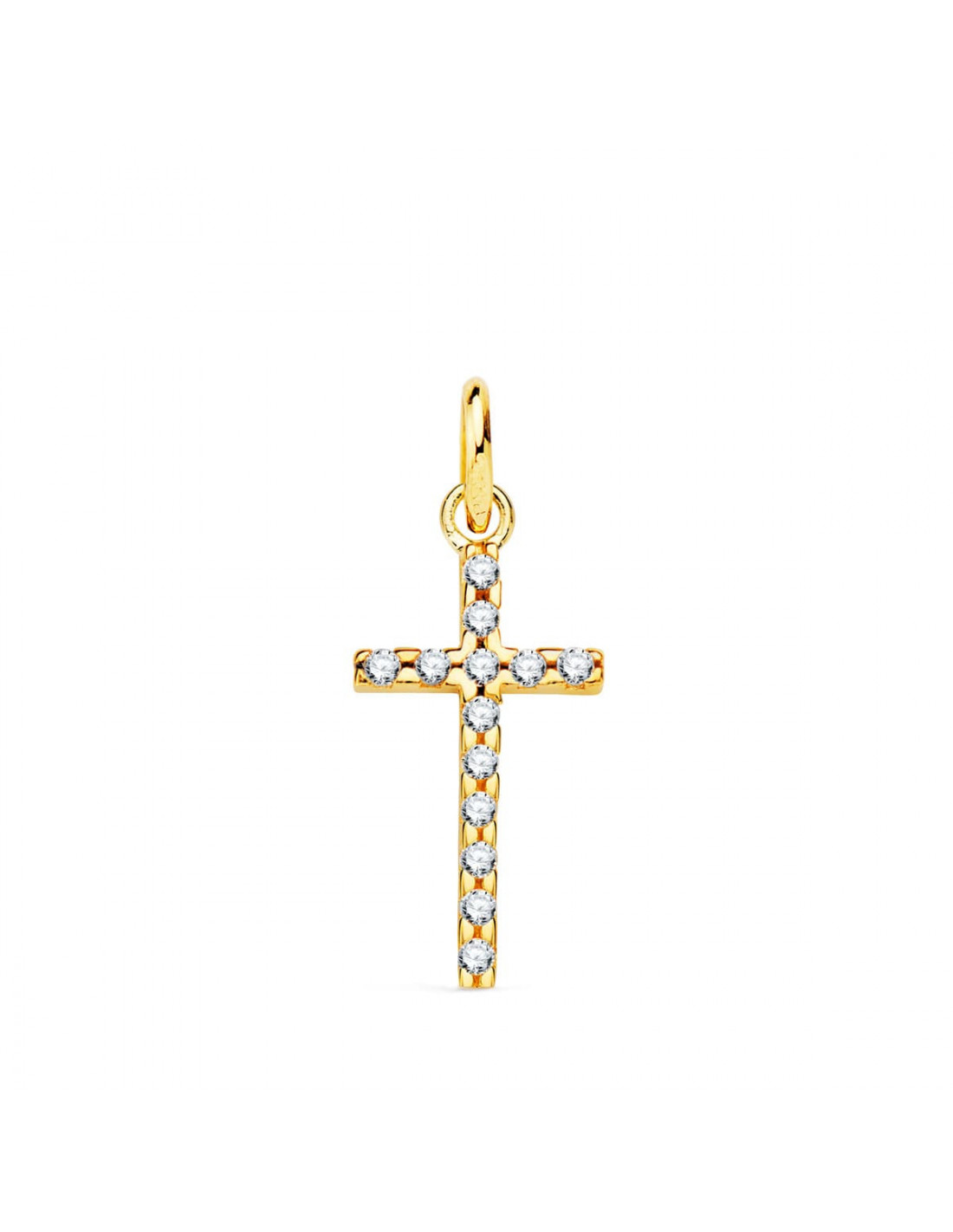 18K CRUZ ORO AMARILLO CIRCONITAS 16X9 MM