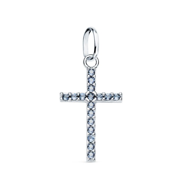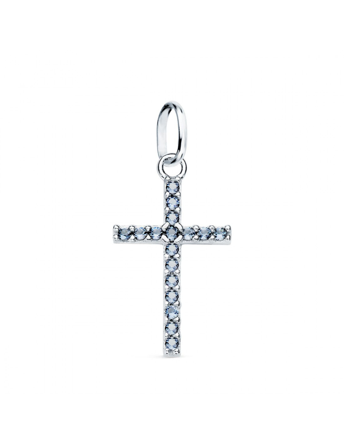 18K CRUZ ORO BLANCO CON CIRCONITAS AZULES. 16X10 MM