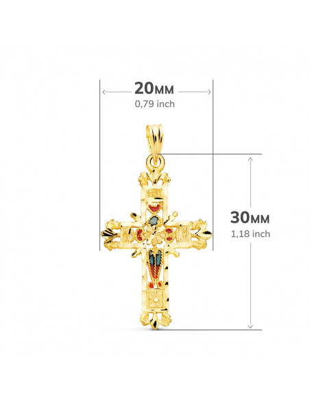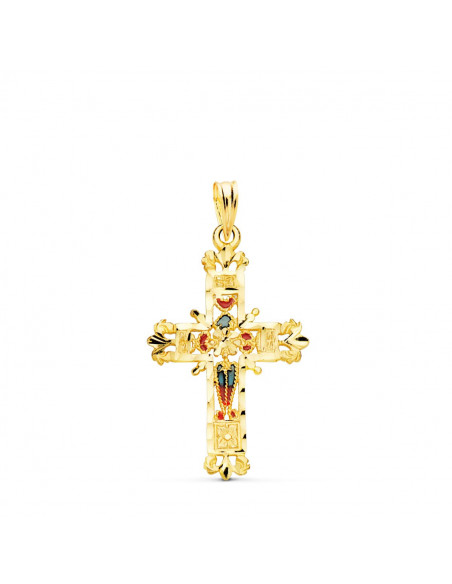 18K CRUZ ORO AMARILLO VIDRIERA CATEDRAL BORDES TALLADOS. 30X20 MM