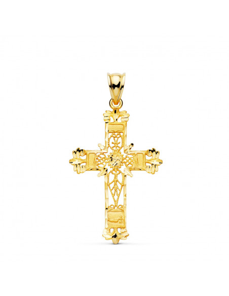 18K CRUZ ORO AMARILLO FILIGRANA BORDES TALLADOS. 37X25 MM