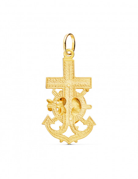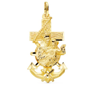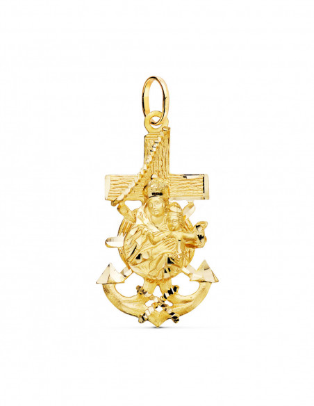 18K CRUZ MARINERA ORO AMARILLO VIRGEN DEL CARMEN TALLADA 40X22 MM
