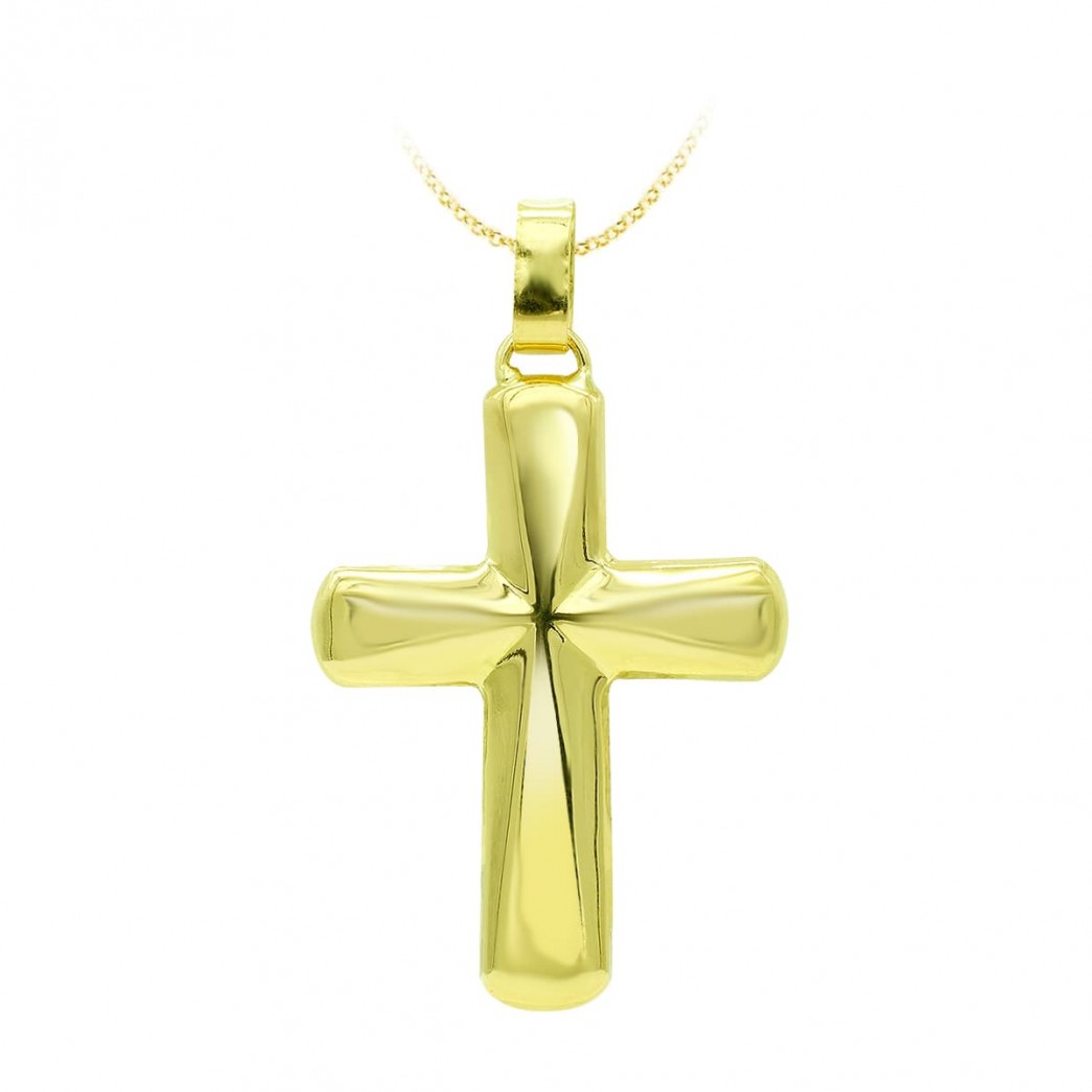 18K CRUZ ORO AMARILLO HUECA LISA 37X26 MM