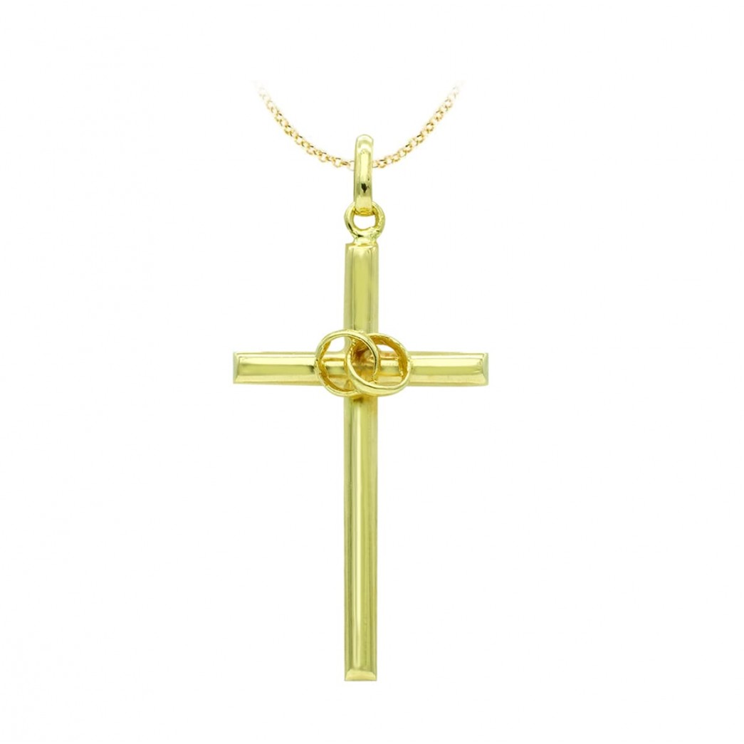 18K CRUZ ORO AMARILLO HUECA ALIANZAS. 27X14 MM