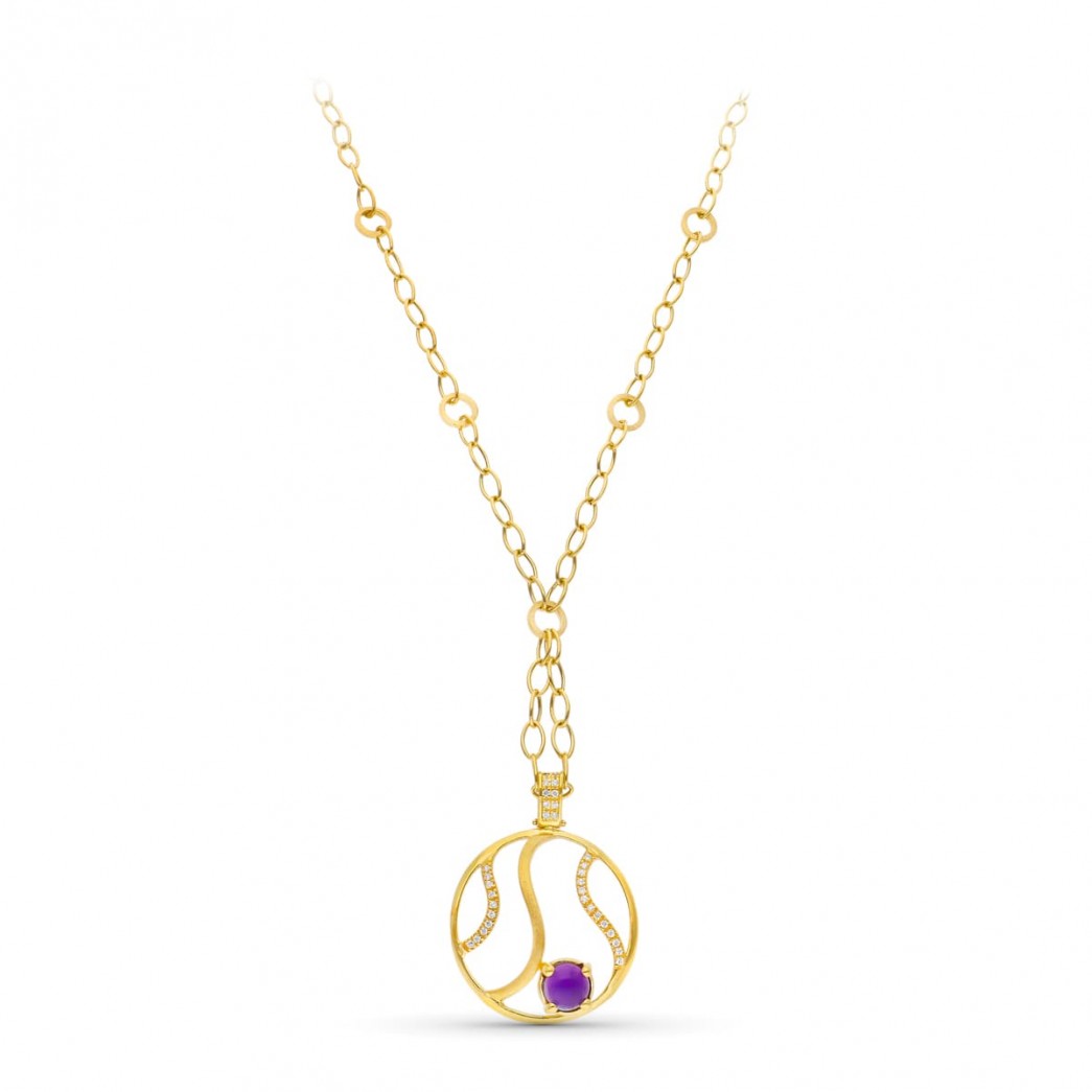 18K GARGANTILLA ORO AMARILLO MATE Y BRILLO MOTIVO REDONDO CIRCONITAS Y PIEDRA