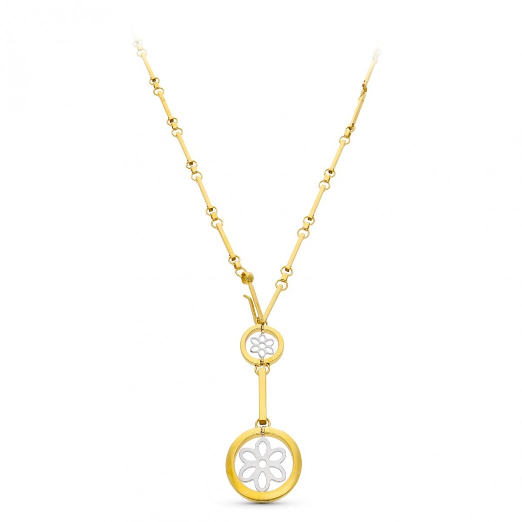 18K GARGANTILLA ORO BICOLOR CIRCULOS Y FLOR 45 CM