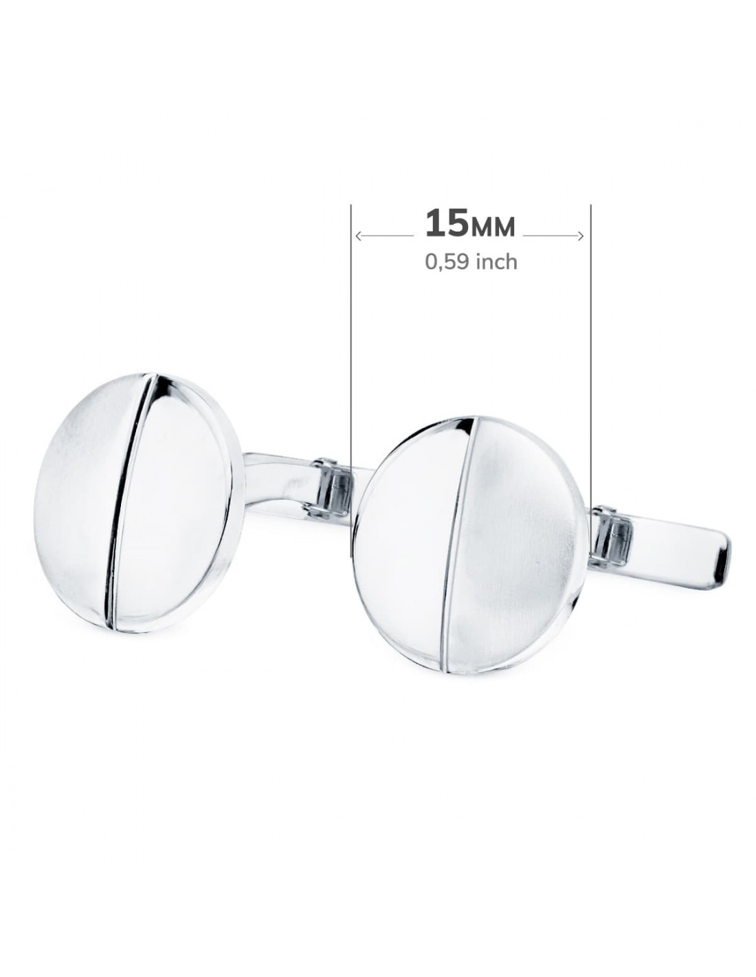 18K GEMELOS ORO BLANCO REDONDOS MATE Y BRILLO 15 MM CIERRE RIGIDO OSCILANTE