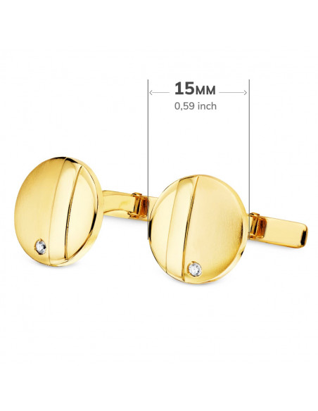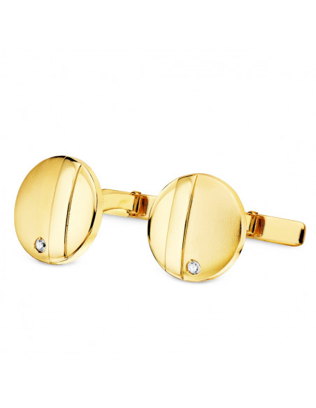 GEMELOS ORO AMARILLO REDONDOS MATE BRILLO 15MM CIRCONITA CIERRE RIGIDO OSCILANTE