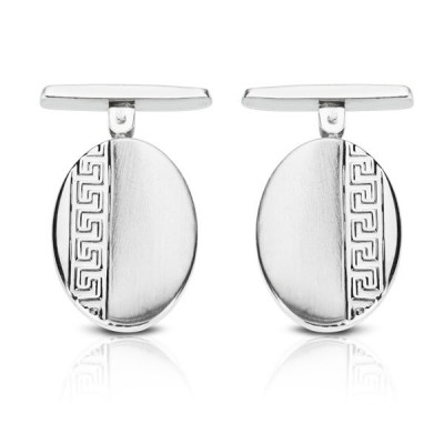 18K GEMELOS ORO BLANCO OVAL GRECA 18X13 MM CIERRE RIGIDO OSCILANTE