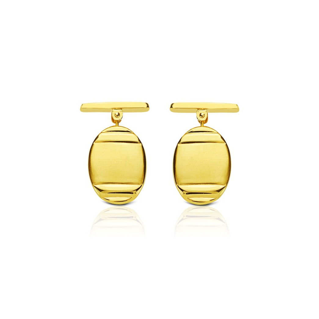 GEMELOS ORO AMARILLO OVAL MATE y BRILLO 18X13 MM CIERRE RIGIDO OSCILANTE