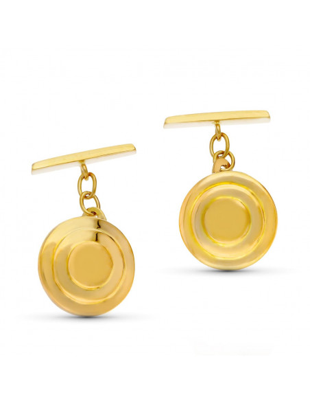 18K GEMELOS ORO AMARILLO MATE Y BRILLO REDONDOS 15 MM
