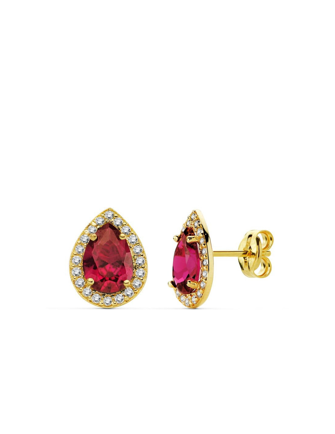 18K PENDIENTES PIEDRA ROJA CIRCONITAS 10X8 MM