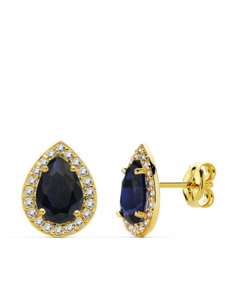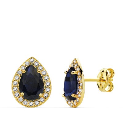 18K PENDIENTES PIEDRA AZUL CIRCNONITAS 10X8 MM