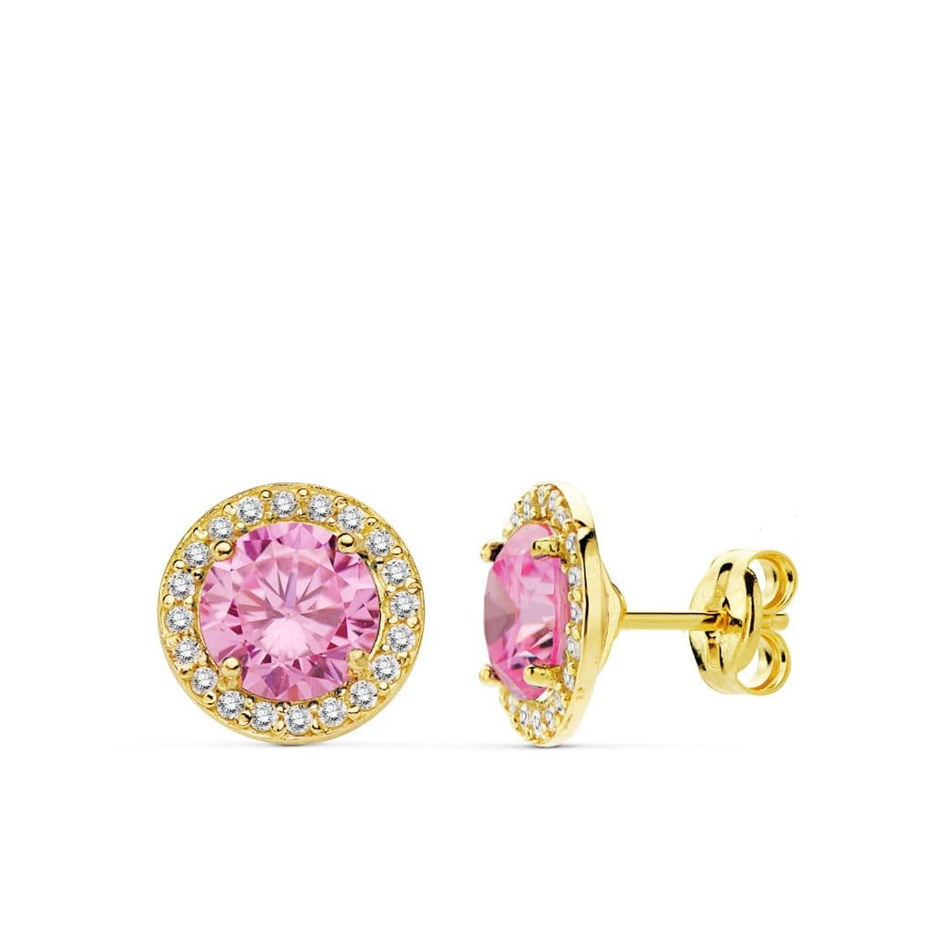 18K PENDIENTES PIEDRA ROSA CIRCONITAS 9 MM