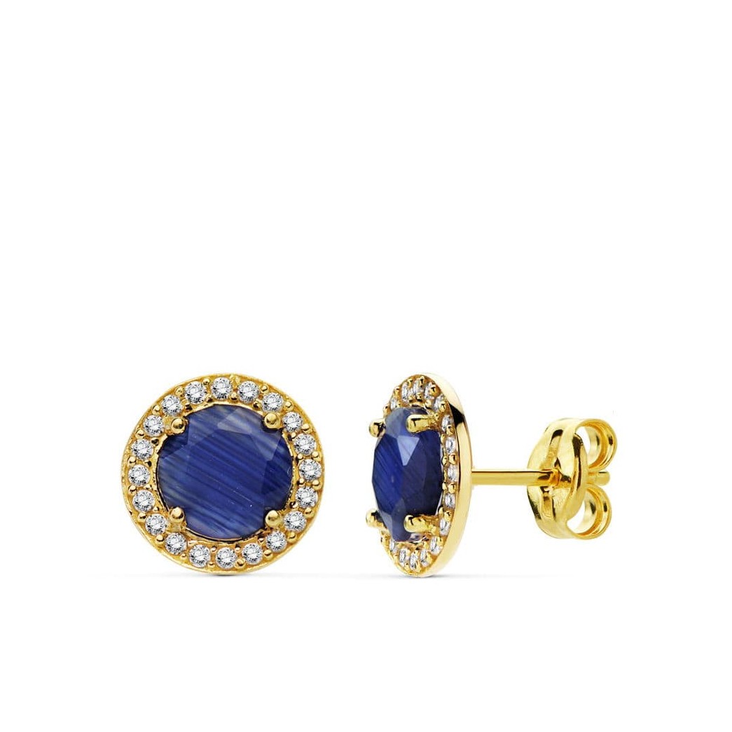 18K PENDIENTES PIEDRA AZUL CIRCONITAS 9 MM
