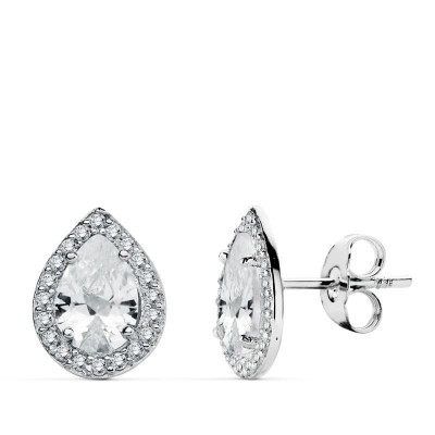 18K PENDIENTES ORO BLANCO CIRCONITAS 10X8 MM