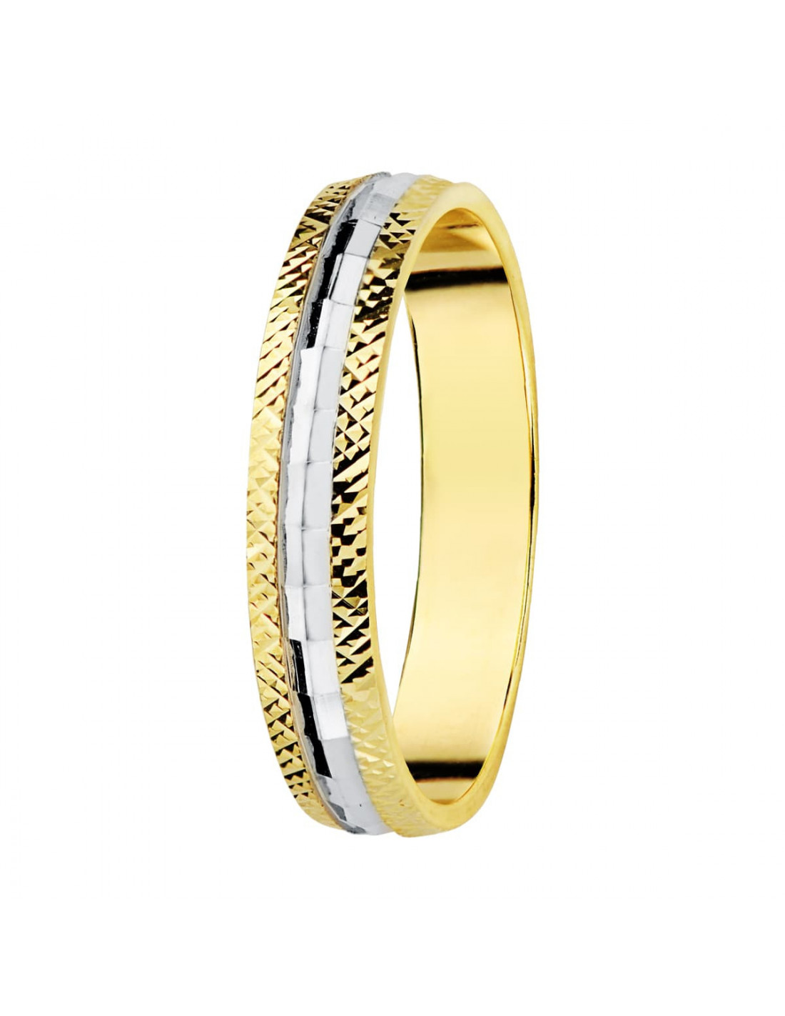 9K ALIANZA ORO BICOLOR TALLADA 3..5 MM
