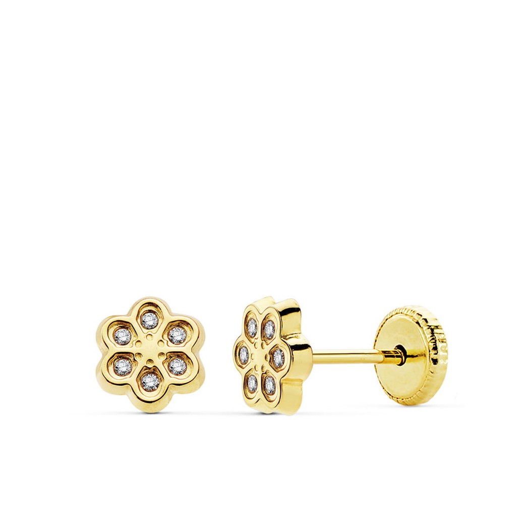 18K PENDIENTES ORO AMARILLO FLOR CIRCONITAS 6.5 MMROSCA