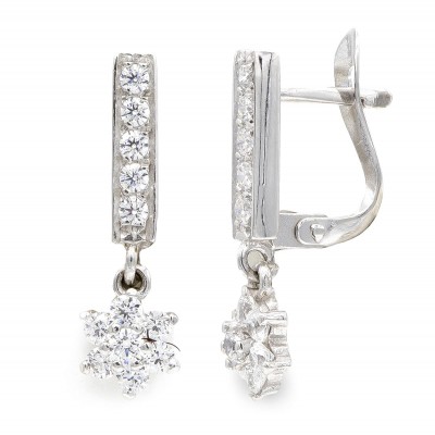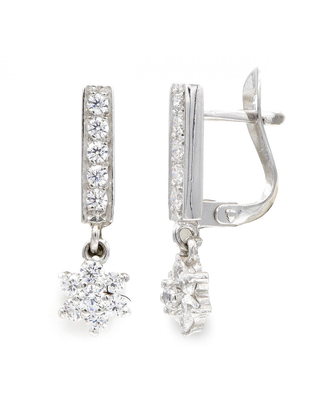 18K PENDIENTES ORO BLANCO LARGOS CIRCONITAS