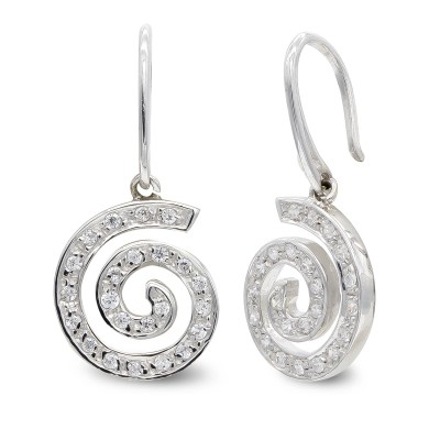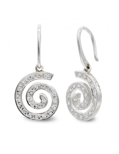 18K PENDIENTES ORO BLANCO CIRCONITAS ESPIRAL. 15X13 MM