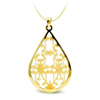 18K COLGANTE ORO AMARILLO LARGO OVAL CALADO